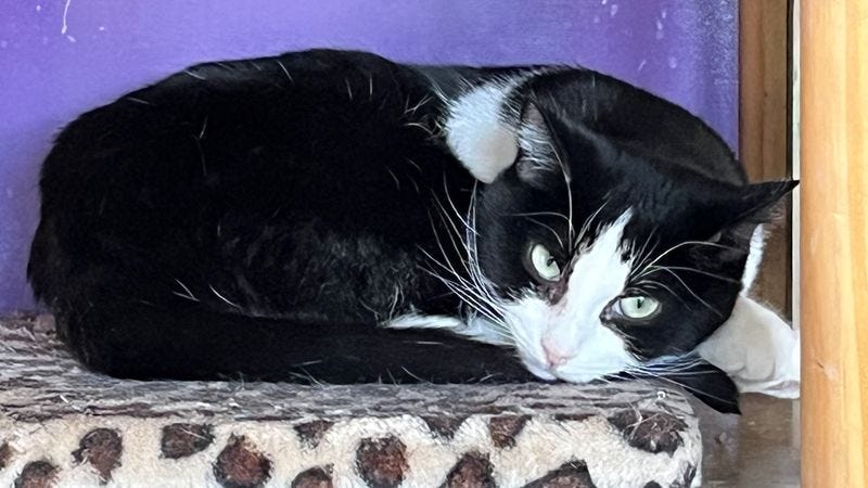 Prissy came to Desert Paws Rescue with her two sisters (Bubbles and Buttercup) and 13 kittens. All three were about a year old and were the mothers of the 13 kittens. All the kittens were adopted but the three adults were very shy and never really were comfortable with interacting with people. After some time, Blossom started allowing some interaction with her caretakers but runs and hides when strangers enter the room. She is very comfortable living as a sanctuary cat.