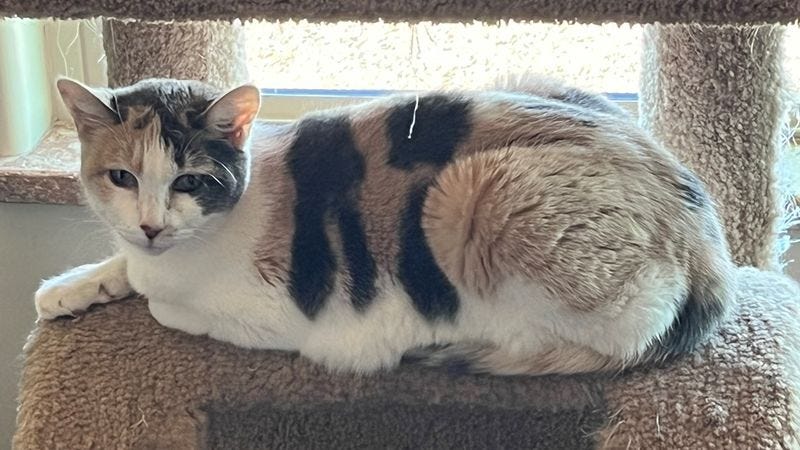 Kismet, a rescued feral kitten, still carries the traits commonly found in such kittens. She is incredibly shy around humans, avoids unfamiliar faces and new arrivals, and often finds solace in her beloved hiding spot. These characteristics may not be what most adopters look for, but Kismet has found her home here at the Sanctuary. Since 2011, she has been a cherished resident, and it seems likely that she will remain so for the rest of her life. And that's perfectly fine with us! 😺