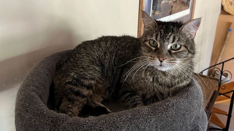 Lucy came to Desert Paws Rescue with her gorgeous litter of kittens in 2010. Unfortunately, the gentleman who had been caring for Lucy and her kittens was a bit afraid of her so he always used large welding gloves to handle her. Lucy has a little PTSD from this and doesn’t interact well with strangers. Once you overcome her initial fear, she can be very sweet. She will even occasionally seek out attention when she wants it, but once the mood to be around people has left her, she escapes back to her solitude.