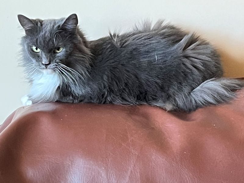 Paige was born at the Sanctuary in early 2017. She was very premature, very small, and all white when she was born. She had under developed back legs that we thought would never be functional and could potentially result in hip issues as she gets older. As she grew her rear legs continue to develop but have given her a very odd gait when she walks. Paige's resting grumpy face was a hit at adoption events, but her grumpy attitude has kept her from being an ideal candidate for adoption. She is extremely shy and isn't a big fan of new people but does well around her the other resident cats. Paige is a healthy, albeit grumpy, gal and we are more than happy to give her a peaceful and safe place to live out her years.