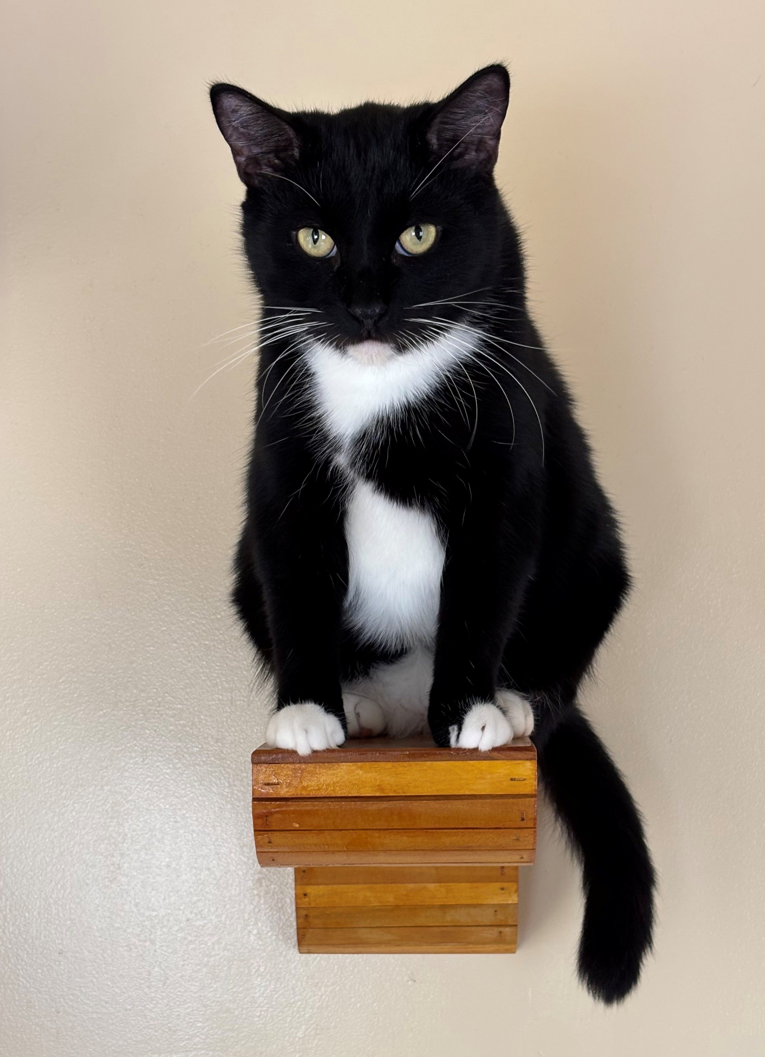 Oscar came to Wayward Cats Sanctuary in March of 2024 after he lost his owner. He is a very handsome young cat that gets along well with other cats. He loves to play with feather toys or anything else that he can chase. Oscar is a little shy at first but warms up once he gets comfortable with his new environment. He has no health issues and is very good about using the litter box.